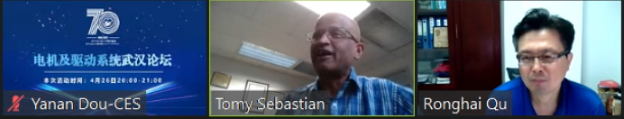 4月26日北京时间20:00点整,电机及驱动系统武汉论坛第一期在B站直播间如期举办。电机及驱动系统领域的专家学者相聚云端,在线学习交流总人数7500余位。本期活动特邀专家为IEEE 会士、尼古拉特斯拉奖获得者、美国密歇根Halla Mechatronics电机驱动系统中心主任Tomy Sebastian博士。华中科技大学曲荣海教授主持本期活动。