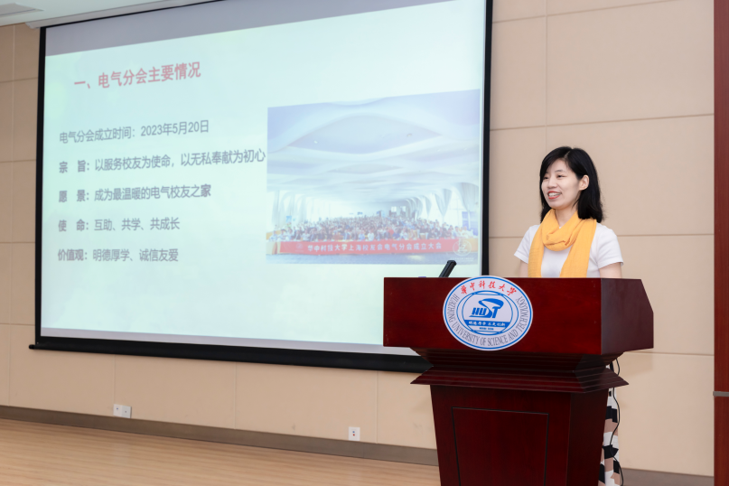 上海校友会电气分会执行秘书长徐琴详细介绍了分会的建设发展情况。分会以“服务校友、无私奉献”为核心理念,构建了完善的组织架构,工作高效有序。通过开展学术研讨、创业路演等丰富多样的活动,精准对接校友需求,有效促进了校友间的资源共享与情感交流。