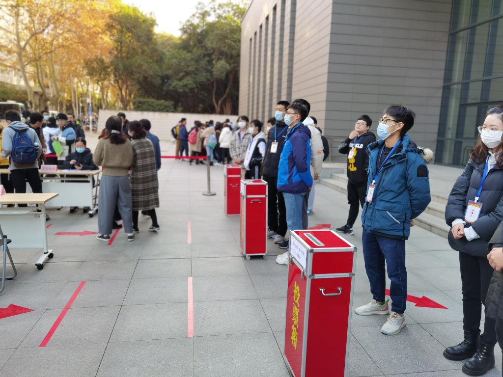 2021年12月1日,是武汉市洪山区第十六届人民代表大会代表选举日。根据学校的统一部署,电气学院是洪山区关山街第一选区第8小组,分别在电气大楼北广场和强磁场中心广场设立了投票站。