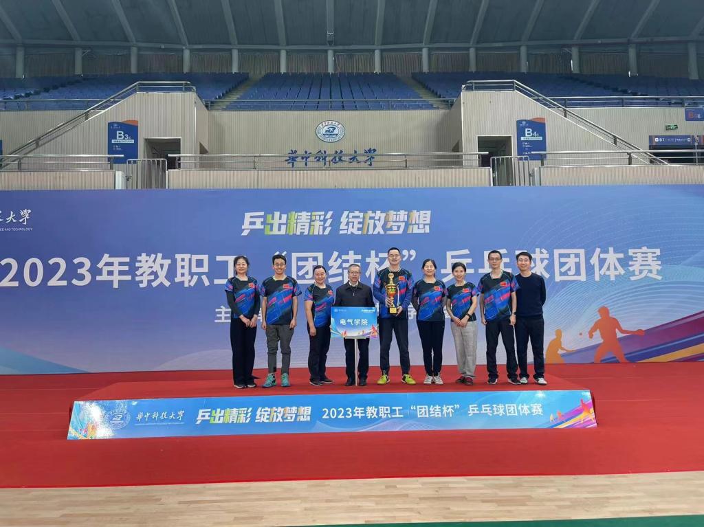 “乒”出精彩,绽放梦想。11月25至26日,华中科技大学2023年教职工“团结杯”乒乓球团体赛在光谷体育馆成功举办。来自主校区和同济校区的多个教职工队伍一同参与了对奖杯的角逐。参赛队按上届比赛成绩被分为甲级和乙级两个比赛组,我院代表队作为甲级组成员参加比赛,经过两天的顽强拼搏,夺得甲级组亚军,创学院在“团结杯”乒乓球团体赛的历史最好成绩。