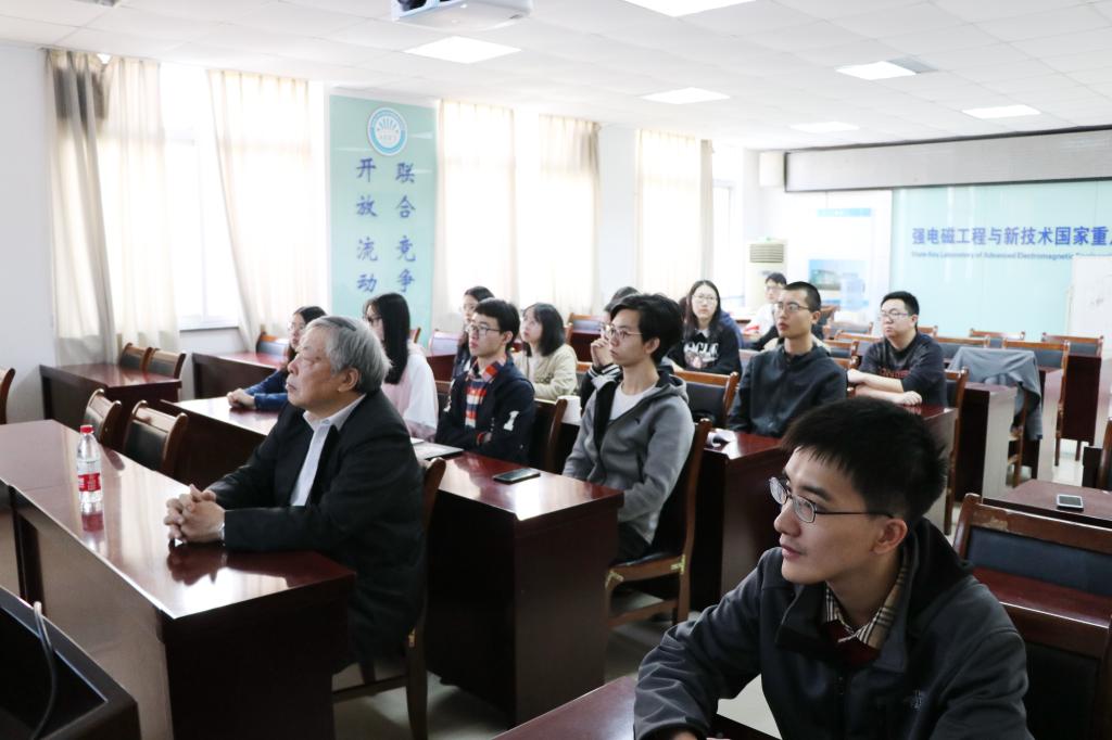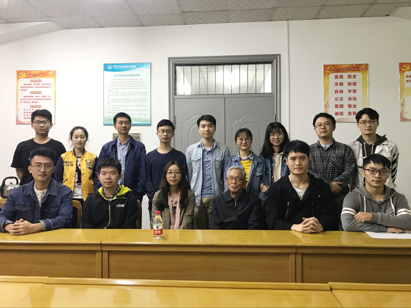 在硕士1805班党支部,叶妙元老师借着“学习”这个话题,为同志们分享了他60多年来的学习、工作经历。叶老师在50年代考入了当时的华中工学院,之后便从事电测方面的工作,先后涉及过欧姆基准、强磁场、超导等方面的课题。当时的科研条件并不如现在这样优越,那一辈科研工作者,发扬了艰苦奋斗的精神,在一穷二白的基础上取得了硕果累累的科研成果。到如今经过了几十年的奋斗,我国终于建成了坚强的智能电网,叶老师为此感到相当自豪。有同志提问应该如何做科研,叶老师回答道,首先,课题的精神要吃透,要广泛的阅读资料,抓住课题最根本的问题;另外就是要攻关,叶剑英有一首诗写到“攻城不怕坚,读书莫畏难。科学有险阻,苦战能过关”;还要有明确的技术方案,多与老师沟通;最后就是沉下心来,几十年如一日地刻苦工作。除了学习和工作以外,叶老师很亲切地聊了许多生活上的事。叶老师生活中是一个很自律的人,从来没有睡过懒觉,到了80岁高龄依然每天坚持锻炼,真正做到了“每天锻炼一小时,健康工作50年”。他再三叮嘱同学们,科研工作再忙也不能放弃锻炼身体。叶老师动情的说:“我们共产党员,就是要为党和国家做一份事业,随时都要想着如何为党和国家做贡献。这并不是什么空话大话,而是每一个共产党员都应该牢记于心的行动准则。”他以实际行动实现了自己的党员理想,在场的青年同志们都深受感染,掌声如潮水一般久久没有停歇。