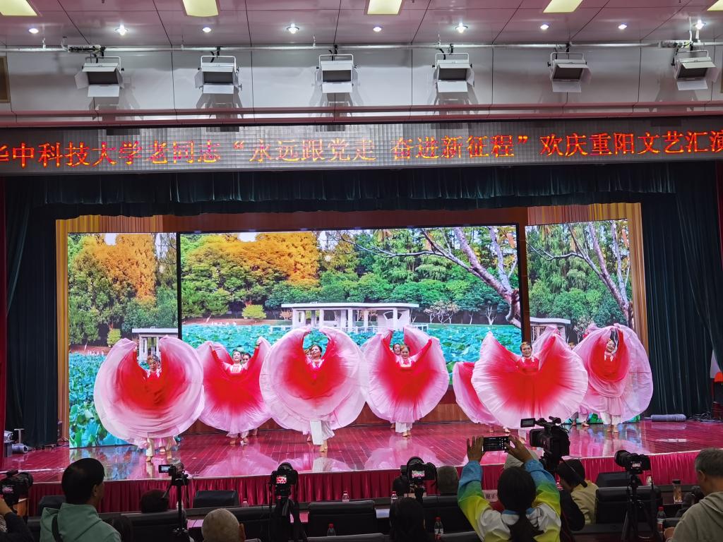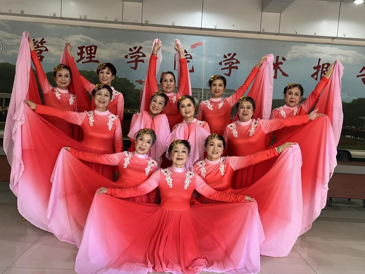 “我们的生活充满阳光…”激情欢快的音乐旋律下,电气学院退休教师舞蹈队表演的舞蹈《我们的生活充满阳光》在2023年华中科技大学离退休工作处和华中科技大学老年协会组织的“永远跟党走、奋进新征程、欢庆重阳节”文艺演出活动中获得一致好评,炫丽的视频画面背景,光彩夺目的粉红舞裙,热情奔放的出场舞姿闪动着美丽色彩惊艳了全场观众。