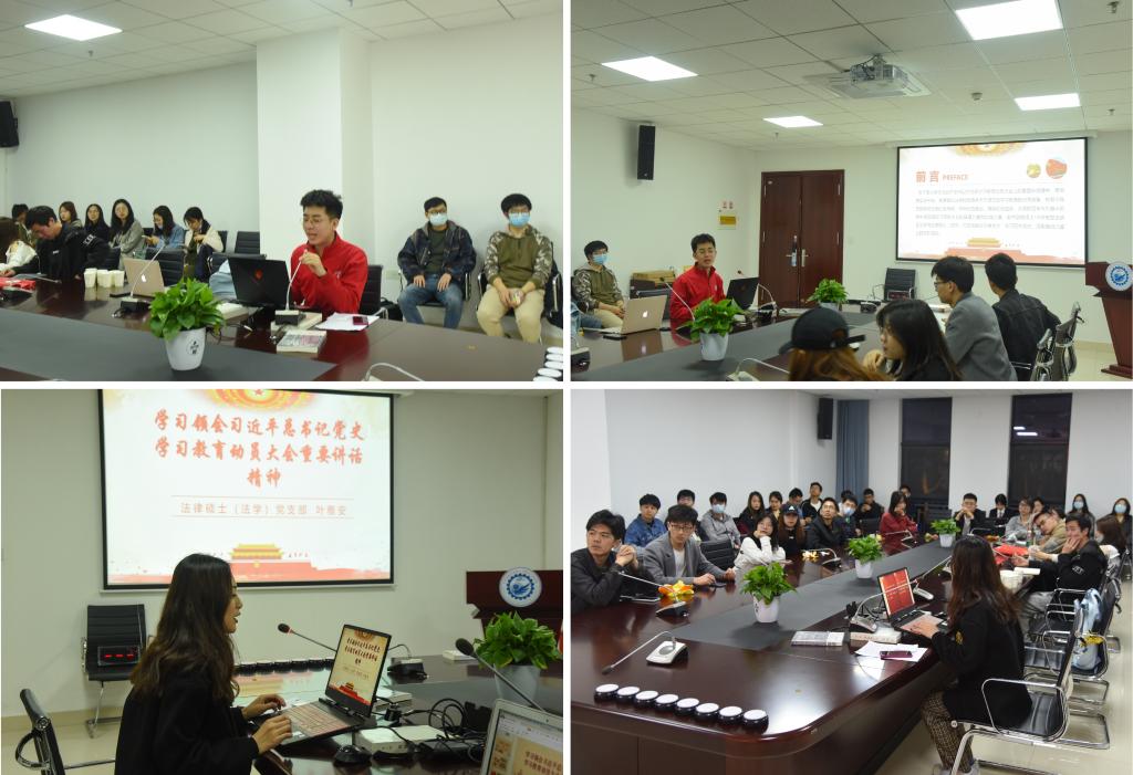 活动开始,电气硕1908班党支部书记谢延对法学院党员表示热烈欢迎,并强调了回望党史源头对于传承红色基因、牢记初心使命的重要意义。法硕(法学)党支部书记叶雅安带领大家学习了习近平总书记在党史学习教育动员大会上的重要讲话精神,并通过集体诵读的方式,让全体党员深刻领会了党史学习教育的重大意义及内在要求。