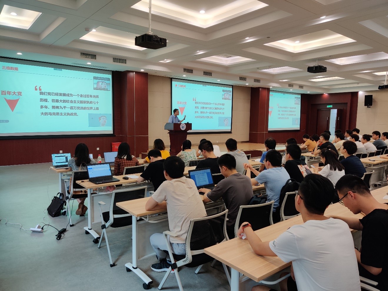 闫帅老师用他诙谐幽默的授课方式将课堂气氛调动得十分好,通过此次课程让同学们更进一步感受到了党的伟大,更加珍惜学习机会,不断提高自身的党性修养,提高自己的素质。