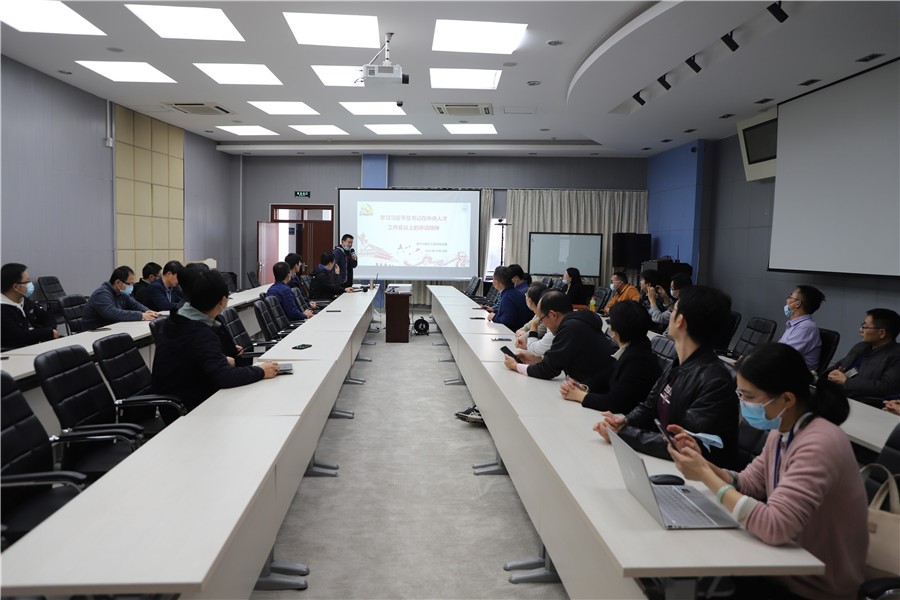活动中,强磁场中心纪检委员杨明领学了习近平总书记在中央人才工作会议上的重要讲话精神,从讲话的背景、我国人才队伍的现状和面临的新要求、人才强国的新理念新战略新举措、深入实施新时代人才强国战略的举措等四个方面进行了详细解读。他指出,习近平总书记重要讲话是指导新时代人才工作的纲领性文献,为我们今后开展科研和教学工作指明了前进方向、注入了强劲动力。强磁场中心和武汉光电国家研究中心都是国家级科研大平台,汇聚了一批优秀人才,我们要深入学习贯彻习近平总书记重要讲话精神,深怀爱国之心、砥砺报国之志,主动担负作为,为建设人才强国贡献智慧与力量。