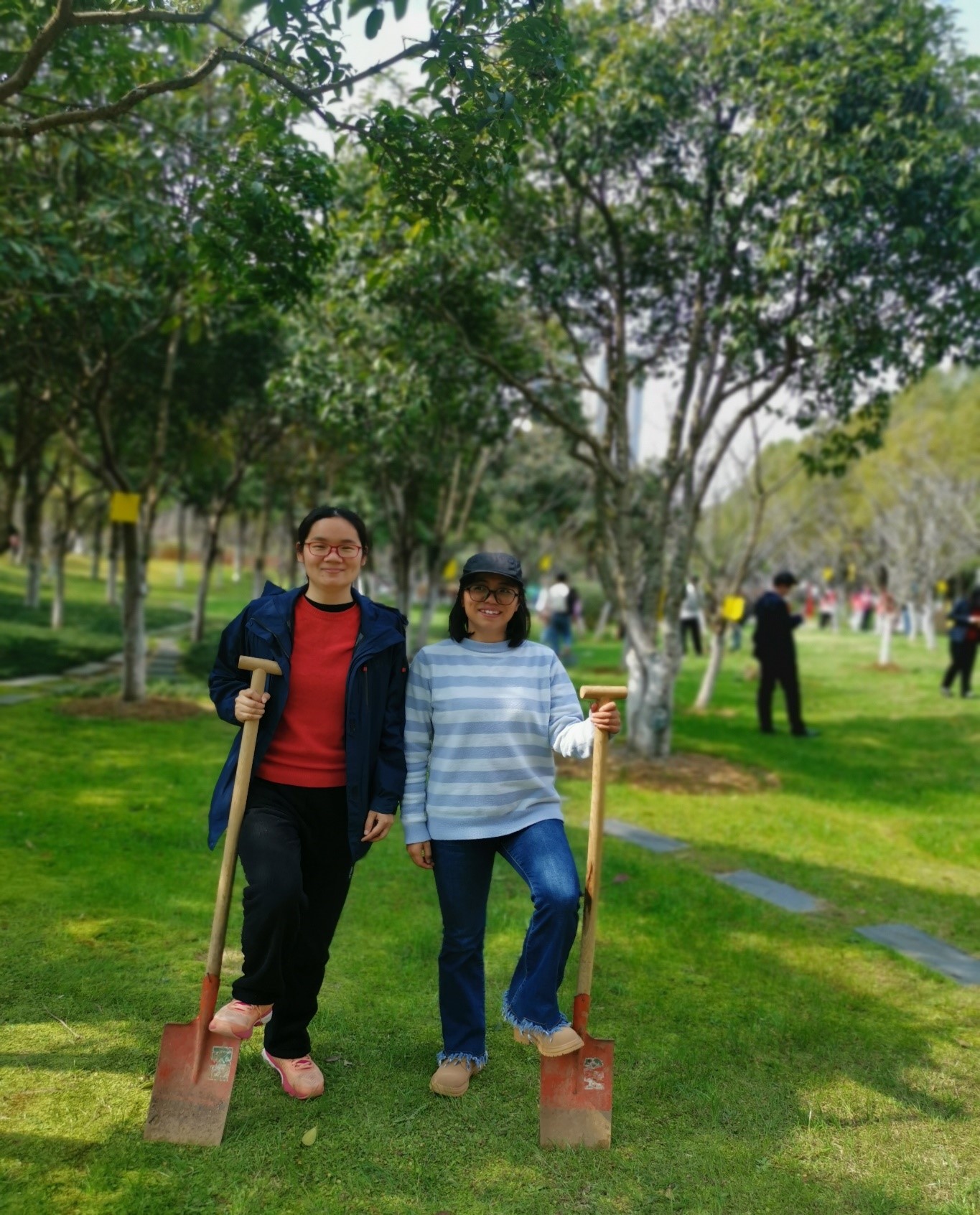 春风十里芙蓉面,暖阳印绿琴台路。植树活动现场热火朝天,各位老师分工协作,挥锹铲土,扶苗填坑,忙得不亦乐乎。有老师回忆起小时候下地松土的经验,有老师分享自己养花的心得,现场更有专业园林工作者指导如何种树,在七嘴八舌七手八脚的热闹氛围中,一棵棵小树被松土浇水。植下一棵小树苗,挂上一个认养牌,也就种下了弘扬绿色理念的责任,种下了对勃勃生命力的向往。