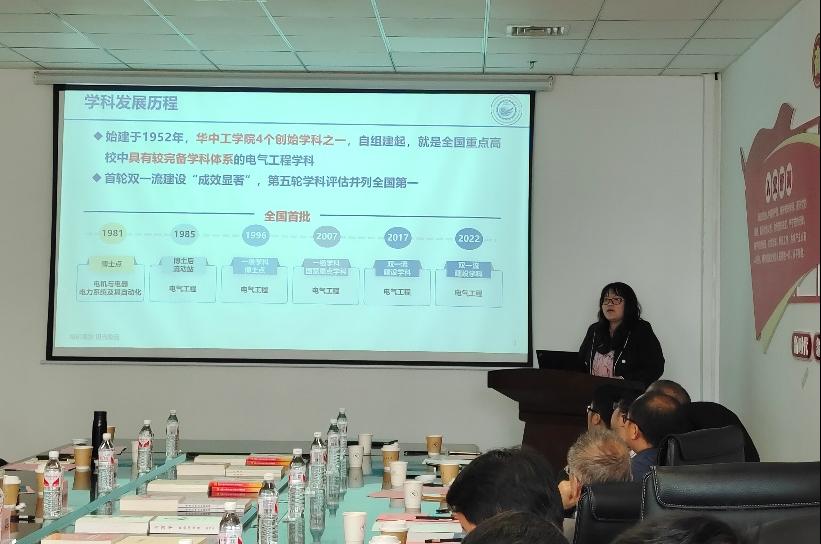 参观完实验室,实践队与河工大电气工程学院开展了学科建设座谈交流。河工大对华中科技大学电气学院一行来访表示欢迎,刘旭副院长介绍了河北工业大学电气工程学院的科研、教学的基本情况,学院现有专任教师116人,拥有电气工程及其自动化国家级一流专业、新能源科学与工程省级一流专业,学院党委于2006年和2011年被评为天津市教卫工委“先进党组织”,学院于2007年获全国教育系统“先进集体”荣誉称号,2021获批河北省党建双创“标杆院系”建设项目。张献主任和耿读艳主任分别介绍了电工装备电磁综合效应与电能智慧无线传输研究所和电气工程学院生物电工与智能健康研究所的基本情况。