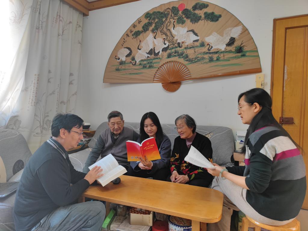 11月5日,星期六,阳光明媚,电气与电子工程学院21级学生吴雨晴回到家里看望外公外婆和父母,共同欢度周末。吴雨晴谈及她早就递交了入党申请书,一直积极向党组织靠拢,这段时间正在认真学习党的二十大报告,希望作为老党员的外公外婆和爸爸妈妈能给予指点。