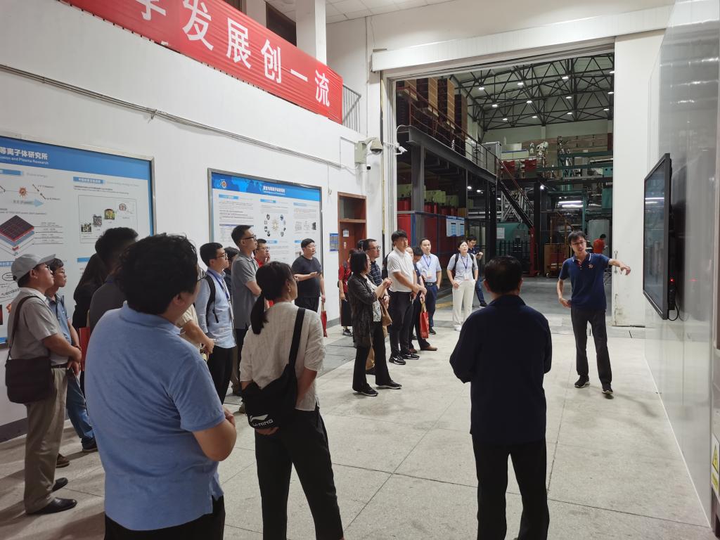 随后,两校参加人员前往强磁场中心和聚变所现场交流。学院党委副书记兼强磁场中心党支部书记吕以亮从强磁场中心历史、实验室条件、承担国家重点科技研发项目、科研成果与荣誉成就、党支部和党员作用等方面进行了讲解,带领大家参观了实验场地。
