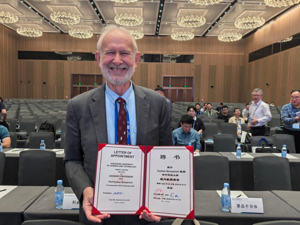 2025年11月7日-10日,IEEE International Power Electronics and Application Symposium (PEAS)国际会议在深圳举行,期间华中科技大学授予美国国家工程院院士Dushan(杜山) Boroyevich教授顾问教授称号,电气与电子工程学院蒋栋教授代为颁发聘书。杜山是美国国家工程院院士、IEEE 终身会士及中国电机工程学会外籍会士,美国弗吉尼亚理工大学荣誉退休教授。他是国际顶尖电力电子专家,并荣获多项重要奖项,包括电力电子领域最高荣...