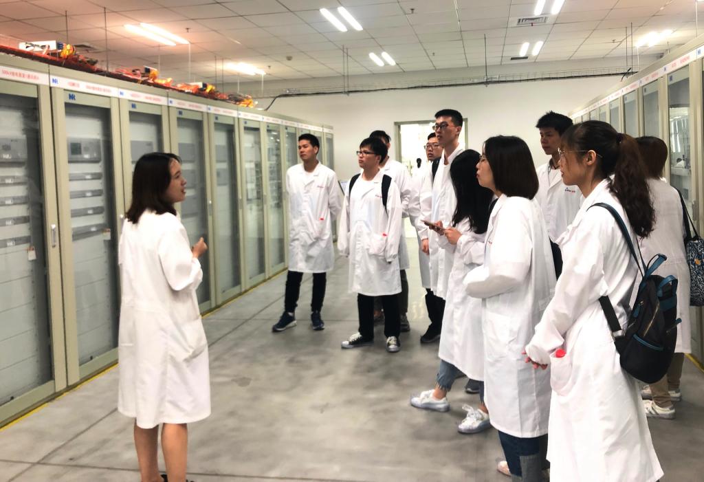 7月24日,实践队员进行了工程试验岗位实践操作。刘工带领实践队员来到南瑞继保公司的试验中心,这里主要负责产品的出厂调试和验收。实践队员参观了用于单装置出厂测试的工程化单装置整机智能测试系统,随后来到试验部。上百个屏柜整齐有序的摆放在整个大厅,所有单元屏柜的尺寸和颜色都是统一的。屏柜在大厅的摆放位置以及屏柜内部装置的摆放位置的确定都是由公司的一套排布系统签收完成。整套排布系统能够简化工作流程,提高工作效率,同时方便实验助理进行实验。整个试验部又细分为保护组、综合自动化组、海外组等。保护组主要负责保护装置的调试,综合自动化组主要负责调试测控装置和通讯装置。海外组主要是负责海外项目设备的出厂调试和验收。目前,南瑞继保公司涉及到100多个国家的海外业务。海外平柜需要根据各个国家的工作习惯和场地特性私人订制。海外组的负责人还为我们介绍了埃及、印度,印度尼西亚以及英国等国家订制的保护柜和控制柜各自的特点。短暂的午休过后,实践队员来到南瑞继保公司的实验中心,吴春宇工程师指导实践队员动手进行试验操作,介绍了国内各种电压级的变电站,细心讲解了如何通过PT装置转变电压,使得能用二次设备监视和保护一次设备,并交流解答了大家的疑问。吴工还为大家讲解了智能变电站的系统结构与传统变电站的差异,以及其优势与便利。同学们在吴工的指导下开展了智能站保护测控柜实操培训,学习了变电站的一些常见故障的检测和解决方法。