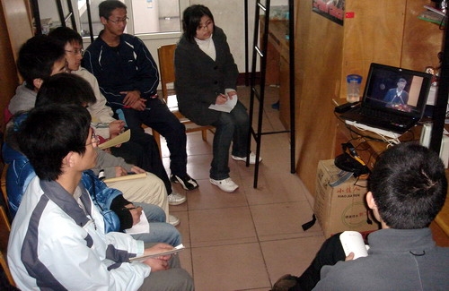 为认真落实学校《关于做好学习实践科学发展观活动准备工作相关要求的通知》,电气学院党总支结合本单位的实际情况,认真部署了各项学习活动,其中包括组织学生党支部集中观看报告会。学院提前安排,提前布置,于27日通知各党支部做好收看报告会的准备。29日下午两点许,各支部学生党员在支部书记寝室集合,调试好设备,做好收看准备。