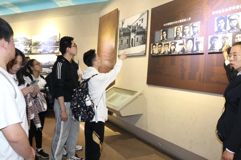 悼念仪式结束后,实践队员进入黄麻起义和鄂豫皖苏区革命历史纪念馆,在讲解员的引导下参观黄麻起义及鄂豫皖革命苏区历史沿革展览。