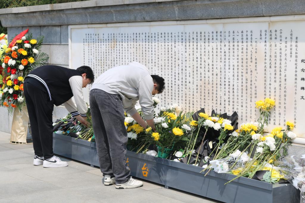 实践队员依次向黄麻起义和鄂豫皖苏区革命烈士纪念碑敬献鲜花。献花仪式结束后,全体成员肃立于纪念碑前,向纪念碑三鞠躬,以悼念在黄麻起义和鄂豫皖苏区革命斗争中牺牲的先烈们。