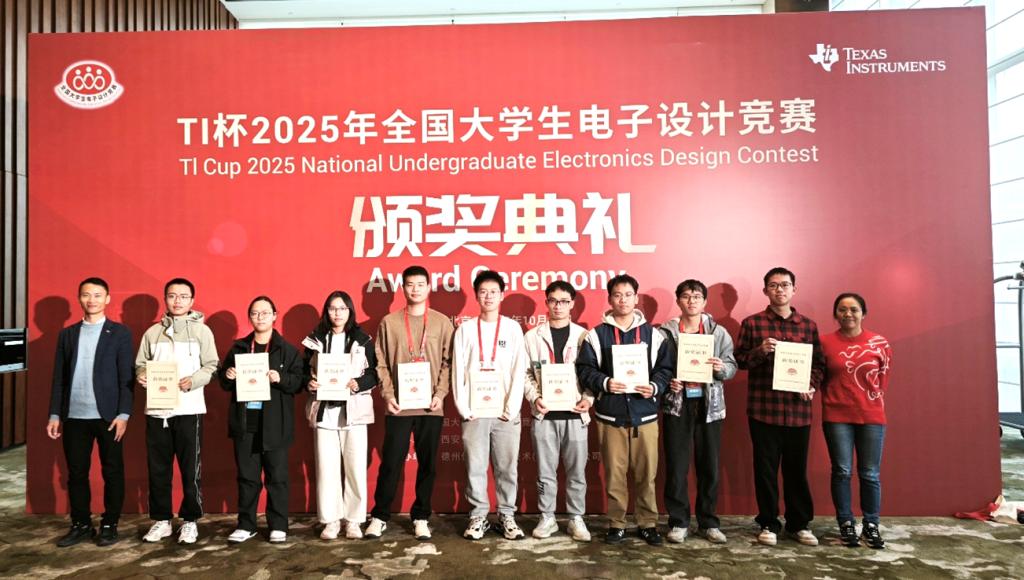 2025年10月18日,TI杯2025年全国大学生电子设计竞赛颁奖典礼于北京举行,此次典礼标志着这一备受瞩目的全国性科技竞赛圆满收官。在本届竞赛中,电气与电子工程学院指导共计60支参赛队伍。学生凭借扎实的专业知识和出色的实践能力,一举斩获14项国家级奖项。其中,8支队伍脱颖而出,荣获TI杯2025年电赛全国一等奖,并选派师生代表前往北京参加颁奖典礼。