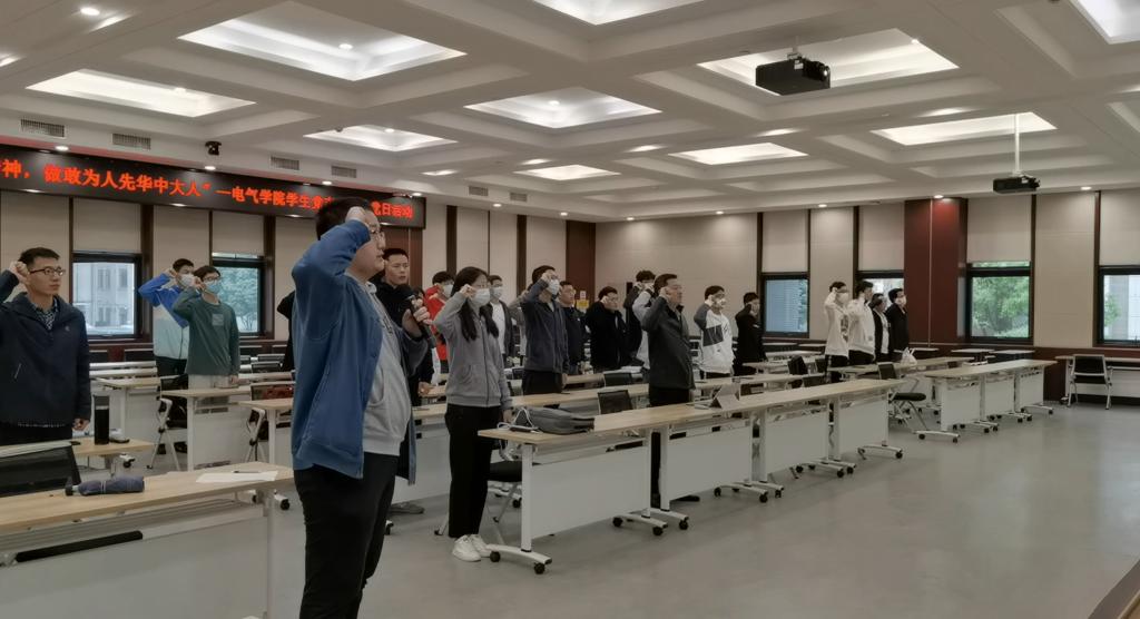 重温入党誓词已成为电气学院学生党支部每月主题党日的例行活动,旨在时刻敦促、鞭策、激励、警醒全体党员同志。