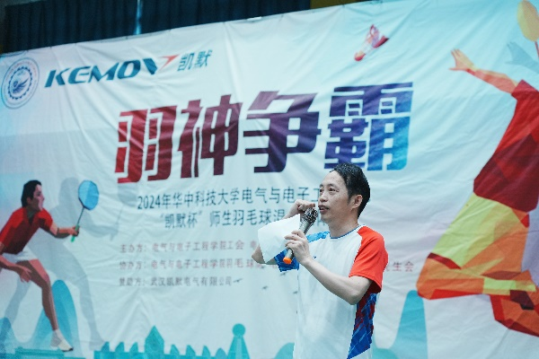 2024年6月2日,由电气与电子工程学院工会和研工组联合主办、院研究生会和院羽毛球队共同协办的2024年电气学院第七届“凯默杯”师生羽毛球赛在西边体育馆成功举行。此次赛事由武汉凯默电气有限公司大力赞助。在此特别感谢武汉凯默电气有限公司为赛事的顺利筹办提供了坚实的物质保障。