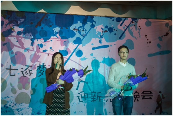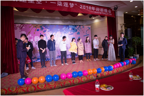 电气与电子工程学院“研途星空•一柒逐梦”研究生迎新晚会与2018年1月14日晚19:00在百景园三楼大厅隆重举行,学院党委副书记罗珺与研究生辅导员雷浩南参加活动。晚会节目精彩纷呈,表演间隙的小游戏更是让观众们热情高涨。