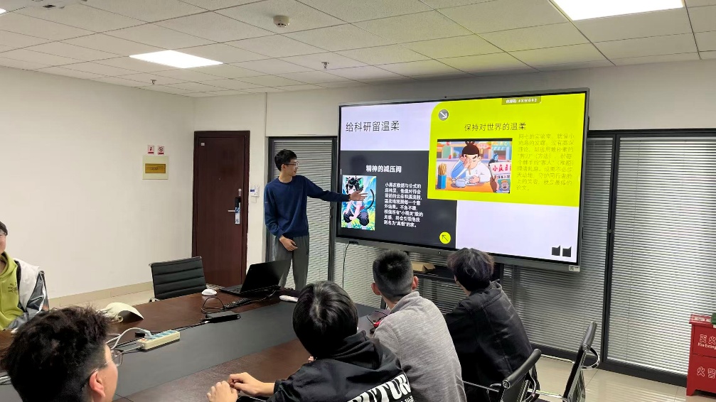 在罗巍陇同志“从动漫看成长”主题分享的启发下,支部成员们展开了热烈的研讨,几名同志从小说叙事、篮球战术和围棋策略等多元视角出发,交流了“主线支线并行”、“攻防转换”和“全局落子”等特色科研方法,通过跨领域思维碰撞,拓宽了研究思路,提升了学术创新能力。