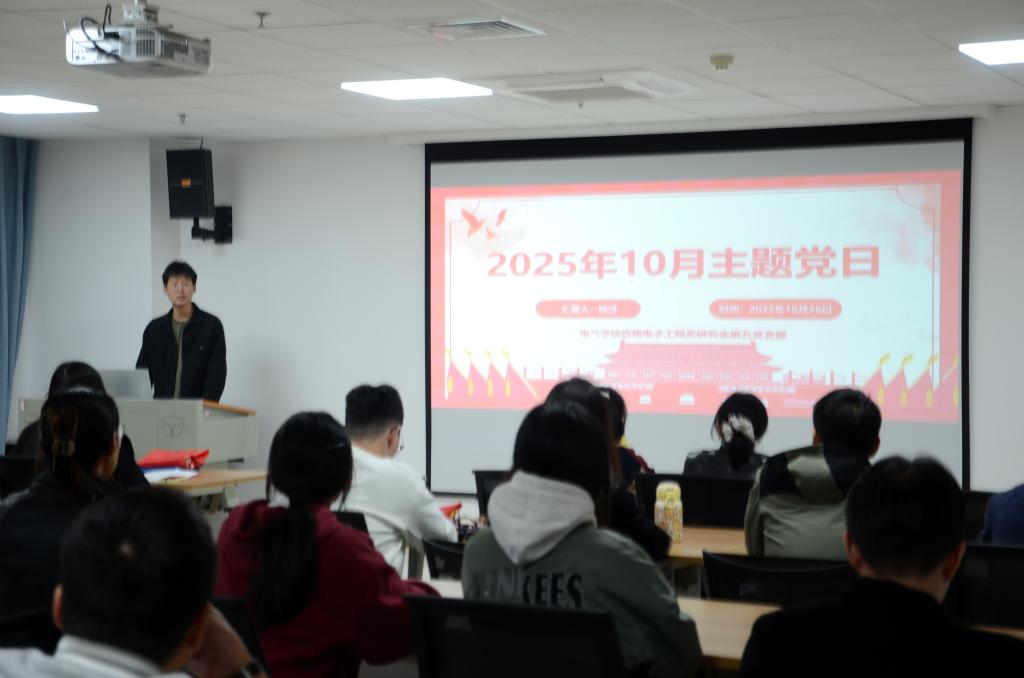 电气学院应用电子工程系研究生第九团支部书记李晓丹主持了十月主题团日活动。在领学《中国共产党思想政治工作条例》时,她深刻阐释了其时代价值,有效凝聚了青年共识。