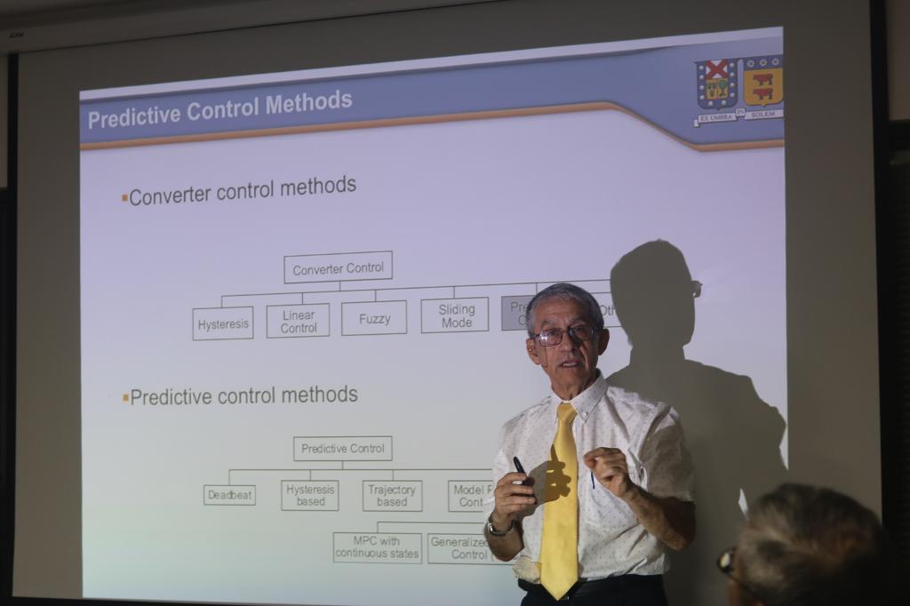 在上半场讲座中,Rodriguez教授首先回顾了经典PWM调制方法,引出模型预测控制的基本理论,然后详细讲解了预测控制在三相逆变器、主动前端、AC/DC/AC变换器、NPC逆变器、矩阵变换器、电机驱动系统中的应用。