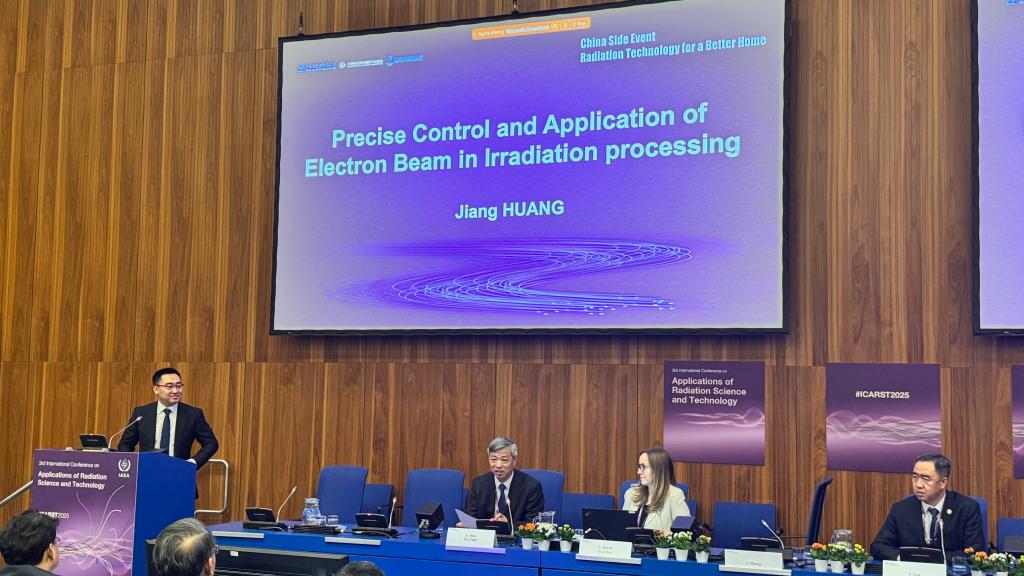 在中国国家原子能机构主办的上“核美家园”(Radiation Technology for a Better Home)主题边会上,黄江研究员以“Precise Control and Application of Electron Beam in Irradiation processing”(电子束在辐照加工中的精确调控与应用)为题,系统性展示了团队在电子加速器技术与辐照应用领域的突破性研究,团队提出的电子加速器扩束均匀化技术与装置、电子束参数实时检测技术解决了行业中辐照均匀度差、辐照面积小与小功率束流检测等难题。