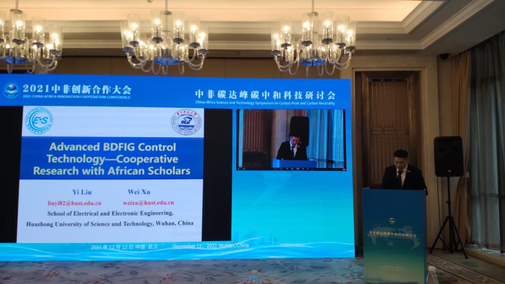 这次研讨会上,来自中非能源领域的六位专家围绕“碳达峰”、“碳中和”的问题,聚焦绿色低碳、可再生能源发展,通过采用“线上+线下”相结合的方式,分享了各自的前沿研究。此次研讨会,华中科技大学电气与电子工程学院能量转换系统研究组(CECS)已毕业的埃及博士生(现为埃及Tanta大学助理教授)Mohamed Gamal Hussien博士应邀做了“Sustainable Energy Research at the Tanta University”大会报告,详细介绍了坦塔大学的可持续能源研究情况及与CECS研究组合作情况。同时,CECS研究组陈亚红博士后代表团队做了“Advanced BDFIG Control Technology—Cooperative Research with African Scholars”大会报告,分享2015年以来团队和多位非洲学者在双馈电机方向的合作情况。