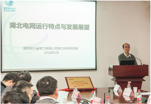 与会人员合影后,大会进入了第二阶段——武汉地区工业界与学术界交流会。共有四位代表汇报了研究成果。国网电力科学研究院武汉南瑞有限责任公司防雷输电事业部总经理谷山强结合电网雷电防护关键问题介绍了当前武汉南瑞对电网雷电防护技术的研究进展;武汉大学王波副教授分享了其研究团队在电网大数据应用中的建模思路;国网湖北省电力有限公司电力科学研究院周鲲鹏副主任介绍了湖北电网的运行特点;最后华中科技大学毛承雄教授汇报了其团队在电子电力变压器方面的研究成果。