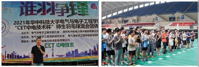 2021年6月12日,在电气与电子工程学院工会、研究生会的大力支持下,在工会主席陈立学、辅导员许文立、萧珺和柳子逊的悉心指导下,由华中科技大学电气学院工会和深圳市中电电力技术股份有限公司主办,电气学院羽毛球队和研究生会协办的2021年电气学院第四届“CET中电技术杯”师生羽毛球赛在光谷体育馆圆满举办。电气学院工会主席陈立学出席开幕式并致辞。