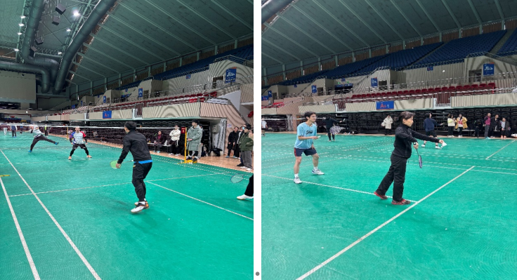 比赛8点正式开始,各个队及其队员精神饱满、意气昂扬,扣杀、轻吊、上网跟进补扣、后场防守,一招一式,有凌厉凶猛,有灵动飘逸,有精准犀利,有技术多变,有默契配合。场上运动员打的酣畅淋漓、紧张刺激,场边观众看的人心潮澎湃、悬念迭起。