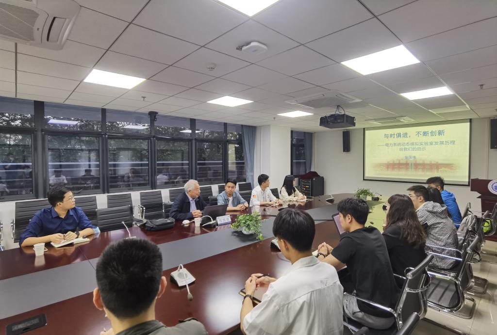 在回忆发展历程之后,张国德介绍起实验室曾经获得的主要科技成果,重点谈了几个重要科技成果获取背后的故事。在谈到国内第一条500kV超高压交流输电线路项目时,张国德讲到,电气学院的教师发现该项目所使用的一款进口设备的重大设计缺陷,并通过电力系统动态模拟实验室将实验现象亲自展示给进口设备公司。“依托于实验室,我们不仅发现了问题,还提出了解决方案。”最终该公司承认设备存在的问题。借助这件事,电力系统动态模拟实验室引领行业修改了行业标准。听完这个故事,学讲团成员们感受到了国家科技实力的进步。我们国家从依赖国外技术,到独立自主发展出自己的技术,再到引领行业标准,体现科技自信,就是靠每一个这样的故事支撑起来的。学讲团成员们表示,会尽其所能,将一件件科技成果背后精彩的故事、宝贵的精神宣扬传承下去。
