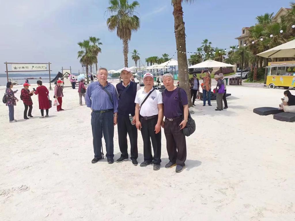 当天我们还兴致勃勃的游玩了蜜泉湖景区。初夏的骄阳,蓝蓝的天空,湛蓝的湖水,特别是那银白色的沙滩仿佛让人置身于马尔代夫,此时年龄不再是束缚我们自由浪漫的理由,90和80多岁的老师们都把各种娇媚和健壮的姿势留在了美丽的蜜泉湖,把幸福感受留在了春游!