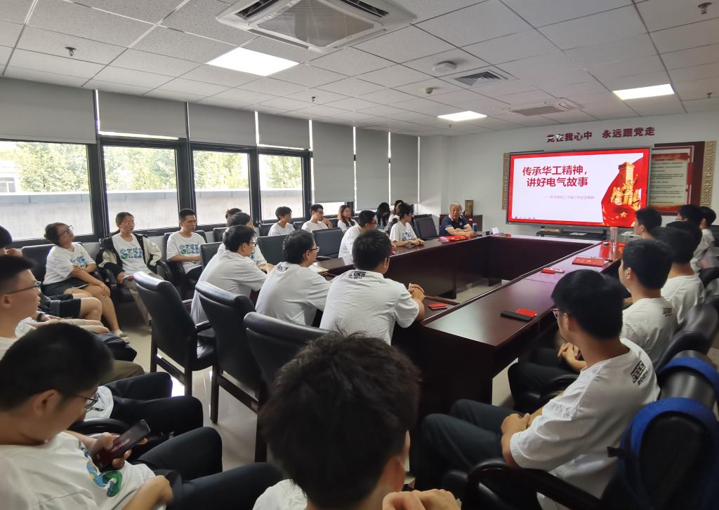 在电气2024级硕士生八班党支部,孙亲锡老师通过回顾电气学院的创建和发展的历程,指出杰出的教师和先进的教学设施是推动学科发展的关键。他还特别提到,团队合作与团结精神是老一辈华工人的精神传承。