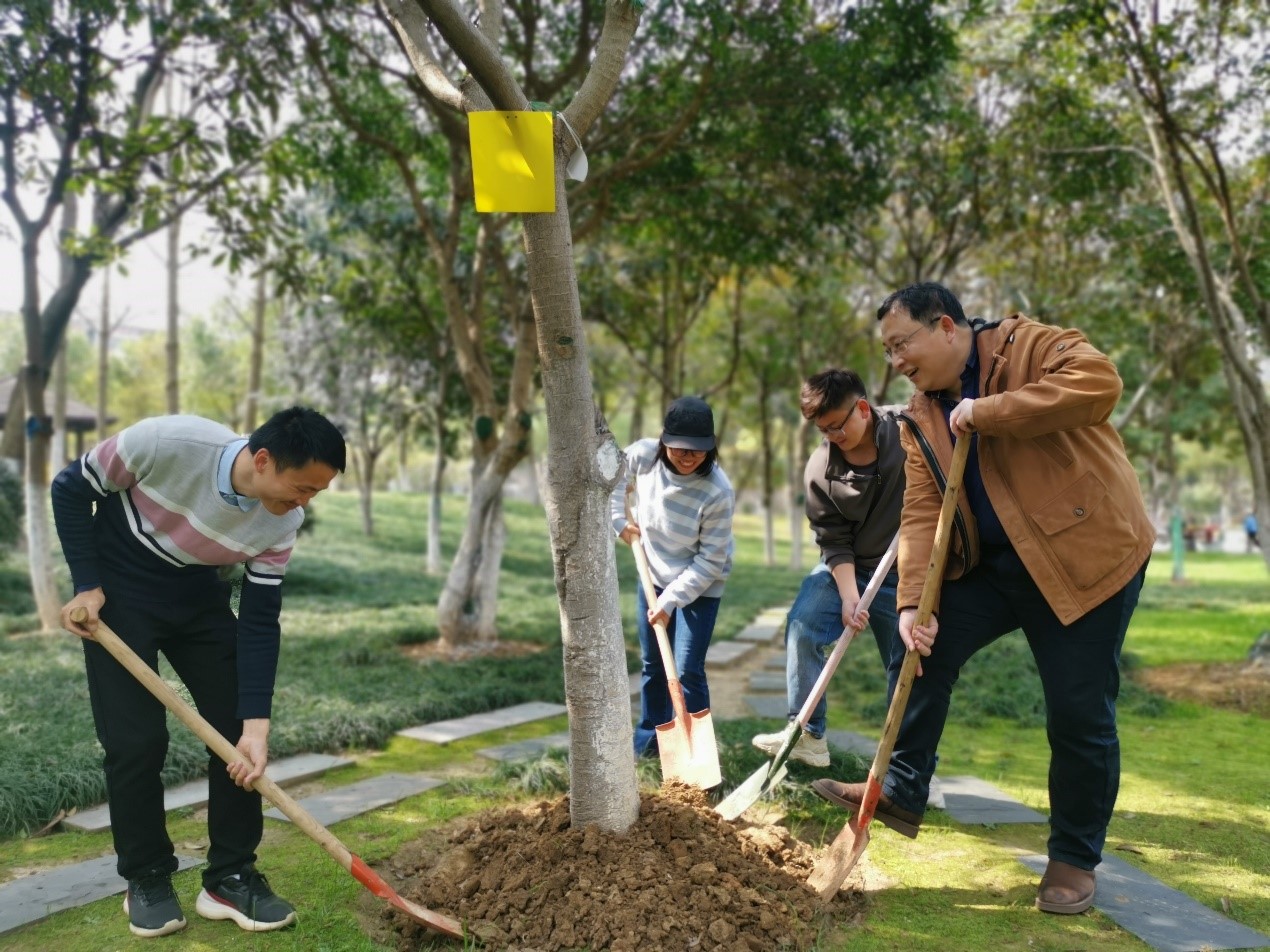 阳春三月,万物复苏,正是一年植树添绿时。3月14日,学院实验教学中心党支部党员群众9人一起前往琴台绿化广场,开展“一抹志愿红,增添希望绿”义务植树及认养主题党日活动。
