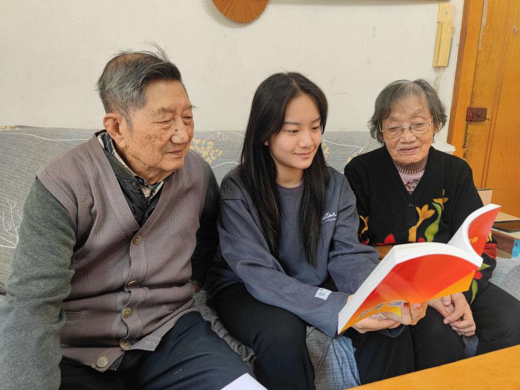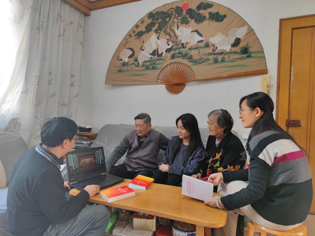 11月5日,星期六,阳光明媚,电气与电子工程学院21级学生吴雨晴回到家里看望外公外婆和父母,共同欢度周末。吴雨晴谈及她早就递交了入党申请书,一直积极向党组织靠拢,这段时间正在认真学习党的二十大报告,希望作为老党员的外公外婆和爸爸妈妈能给予指点。