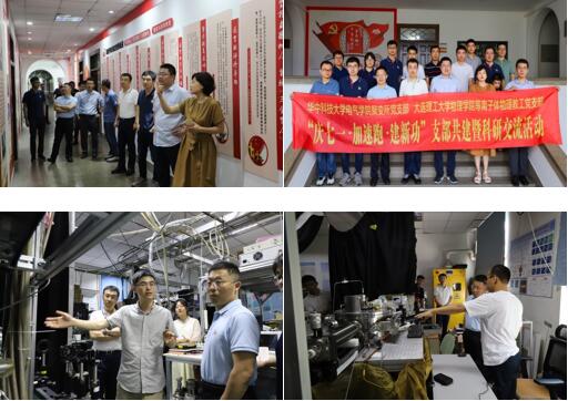 当日双方一同在大工校内进行了实地参观和考察。在物理学院党建工作展区,于艳敏副书记详细介绍了近年来大工物理学院党建工作的举措及取得的成绩;在大工校史馆,华科聚变所支部党员同志跟随讲解员,系统的领略了大工的发展历程、“红色基因”和新老大工人矢志奋斗的可贵品质。在三束教育部重点实验室内,双方结合实验室装置以及取得的成果,就磁约束核聚变、半导体工艺、环境治理、先进诊断等领域最新技术开展了热烈的讨论交流。