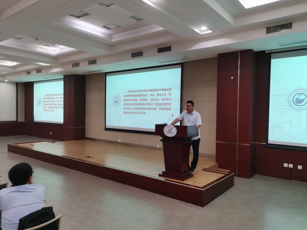 首先在电气大楼B203多功能厅召开了交流会。交流主题是“提升教师党支部书记履职能力,提升教师党支部政治功能、组织功能,破解党建业务两张皮”。与会人员观看了华中科技大学电气学院介绍视频片,张明书记汇报了学院的师资队伍、科研平台和社会服务建设情况,从工作思路、工作做法和工作效果3方面介绍了党建工作情况。我院党建工作紧紧围绕立德树人的初心和科技强国的使命,紧抓“五个到位”,通过开展“五项计划”,取得了良好的党建效果,先后获得全国党建标杆院系、湖北省高等学校先进基层党组织等荣誉。